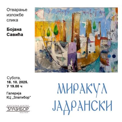 У суботу, 18. октобра, у 19 часова, биће отворена изложба „Миракул јадрански”, аутора Бојана Савића.