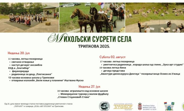 Село Трипкова биће домаћин манифестације „Михољски сусрети села 2025“, која се ове године одржава уз подршку Министарства за бригу о селу, а у организацији Општине Чајетина. Програм се реализује кроз више догађаја током три летња викенда, са циљем очувања традиционалне културе, сеоског начина живота и уметничког израза у руралним срединама.