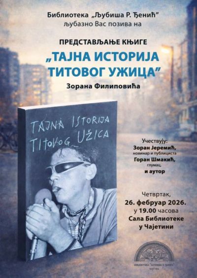 У четвртак 26. фебруара 2026. године у сали библиотеке "Љубиша Р. Ђенић" у Чајетини, одржаће се промоција књиге "Тајна историја Титовог Ужица", у издању Библиотеке "Љубиша Р. Ђенић" Чајетина.
