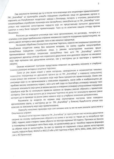 У предлогу иницијативе се наводи да учесници незаконите приватизације ПK „Златибор“ желе себи да прибаве високу имовинску корист и да већ сада по Златибору уговарају тако стеченог земљишта чија цена је висока и отворено уговарају упошљавање појединих извођача које би то земљиште привели намени за градњу разних објеката у приватном интересу.