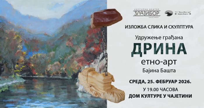 Изложба слика и скулптура Удружења грађана „Дрина етно-арт” из Бајине Баште биће отворена у среду, 25.2.2026. године у Дому културе у Чајетини.